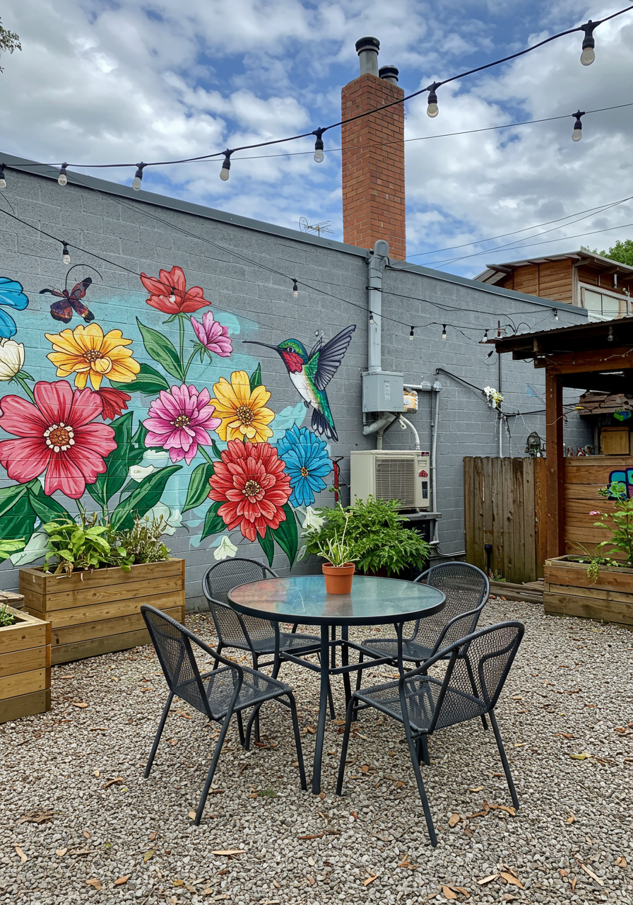 Look no further than Apotheca Flowers in Goffstown, NH. Our family loves to pack the kids up and walk through the unique flower shop. We’ve left out pictures of the inside of the store—we’ll keep that a surprise for you. However, on our recent visit, we captured some of the awesome sitting spaces they provide around the outside of the cafe. Street side, you will find your typical seating, ideal for people watching and enjoying the sunshine.