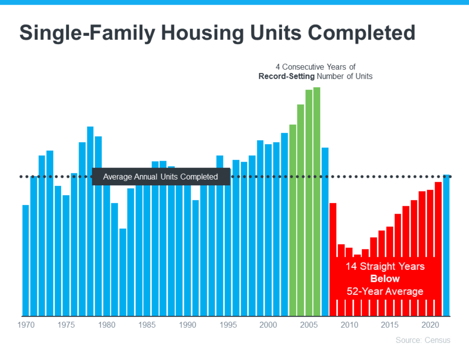 While there are more houses for sale right now than there were at this time last year, there’s still a historically low number of homes available on the market. One reason for that is years of underbuilding—meaning there haven’t been enough new homes built to keep up with demand.